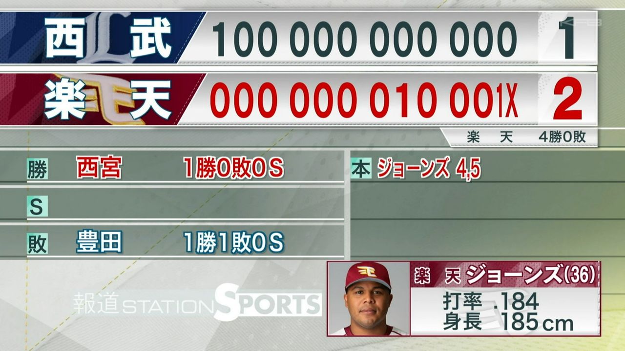 楽天 ジョーンズが決めた 延長12回サヨナラ弾 ルーキ西宮に初白星