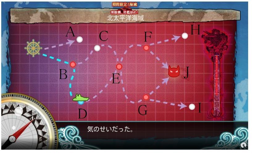 この編成の場合、ルートはB-D-E-F-Jとなります(低速戦艦2隻以上でE-F固定?)