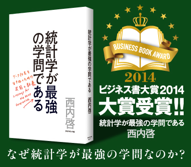 35万部を突破し、知的教養書としては異例のベストセラーとなった『統計学が最強の学問である』が、このたび「ビジネス書大賞2014」にて「大賞」を受賞しました。