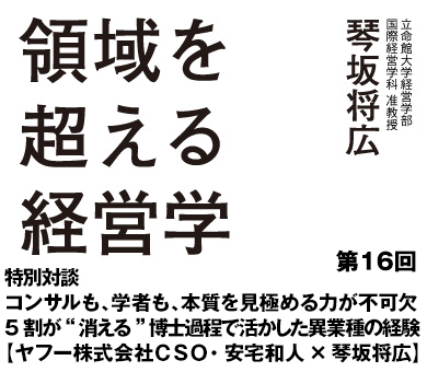 イェール大学でPh.D.(博士号)を取得した脳神経科学者であり、マッキンゼーのコンサルタントとして活躍し、現在はヤフー株式会社でCSO(チーフストラテジーオフィサー)を務める安宅和人氏。そして、ベンチャー企業の経営者からマッキンゼーのコンサルタントを経て、オックスフォード大学でPh.D.を取得し、現在は立命館大学経営学部准教授として教鞭を執る琴坂将広氏。