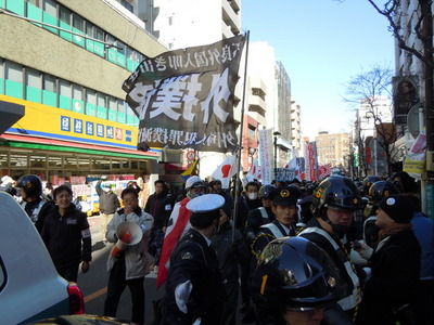 例えば今年1月19日(埼玉・西川口〜蕨)と3月23日(東京・江戸川区西葛西〜葛西)において私どもが行なったデモではナチ党旗の鉤十字(ハーケン・クロイツ)を用いたことが世界各国で話題沸騰となったようである。