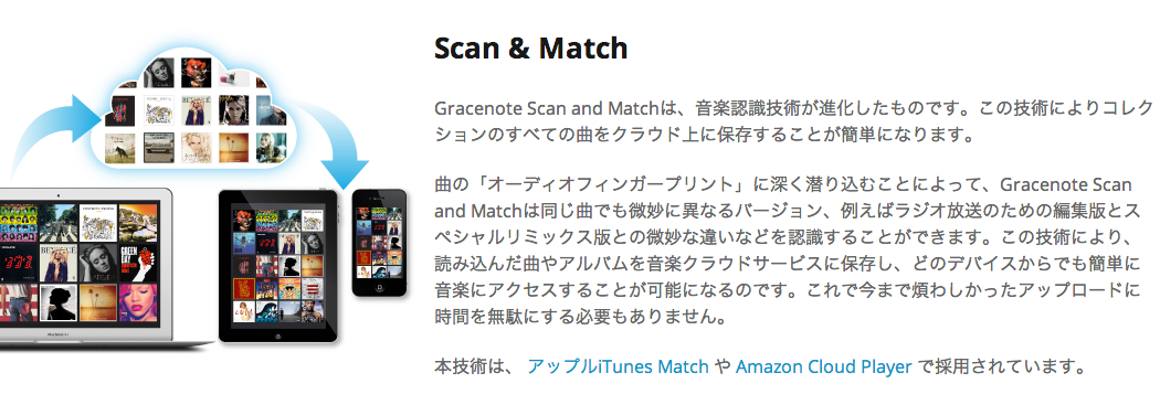 そして現在GracenoteはAppleと深く関わっており、iTunesのGeniusやiTunes Matchの技術やデータベースとして使用されているそうです。