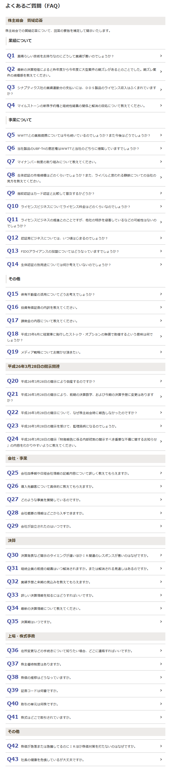 DDSのよくある質問がウケル「素晴らしい技術をお持ちなのにどうして業績が悪いのでしょうか?」「平成26年3月28日の開示により倒産するのですか?」「継続企業の前提の疑義はいつ解消されますか。または解消される見通しはあるのですか。」 http://t.co/SOcrWJcs5X