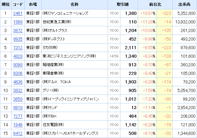おかげさまで、ダントツ、ぶっちぎりで東証一部下落率1位を獲得しました。今年、2度目です。http://t.co/RVP7W6lmdm