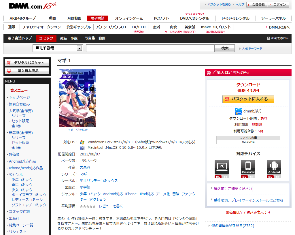 - BookLive!で小学館コミックの配信が始まったけど「小学館マンガ作品の端末へのダウンロードは購入から5年間です」という笑えない制限が付いていた ※2012年10月5日