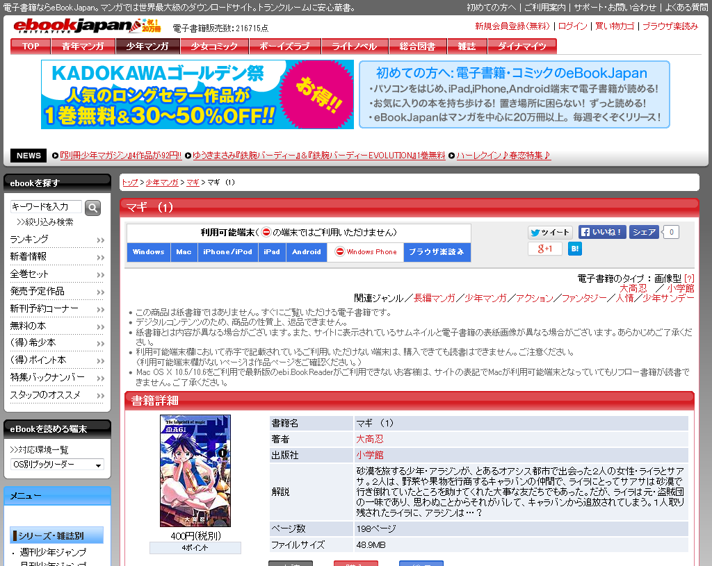 - 【要注意】ニコニコ静画(電子書籍)の小学館作品は、他店より安価だけど180日間の制限がついている ※2012年10月24日