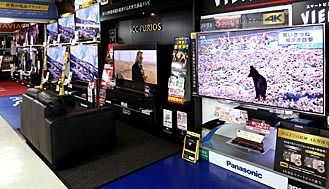 ところが、12年を底に、足元は6万円前後まで値を戻しつつある。単価反転の要因としてよく指摘されるのが、大型テレビの高付加価値化だ。高精細の「4K」などは、家電量販店の店頭でも目立つ場所に陳列されている。
