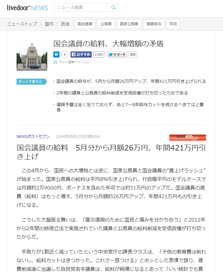記事名:国会議員の給料、大幅増額の矛盾