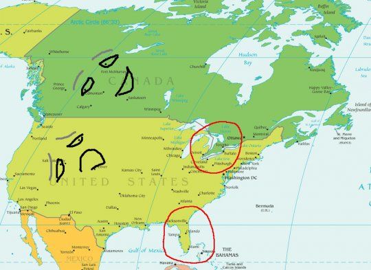↑カナダはアメリカ合衆国の北で、アメリカ合衆国の上ではない。