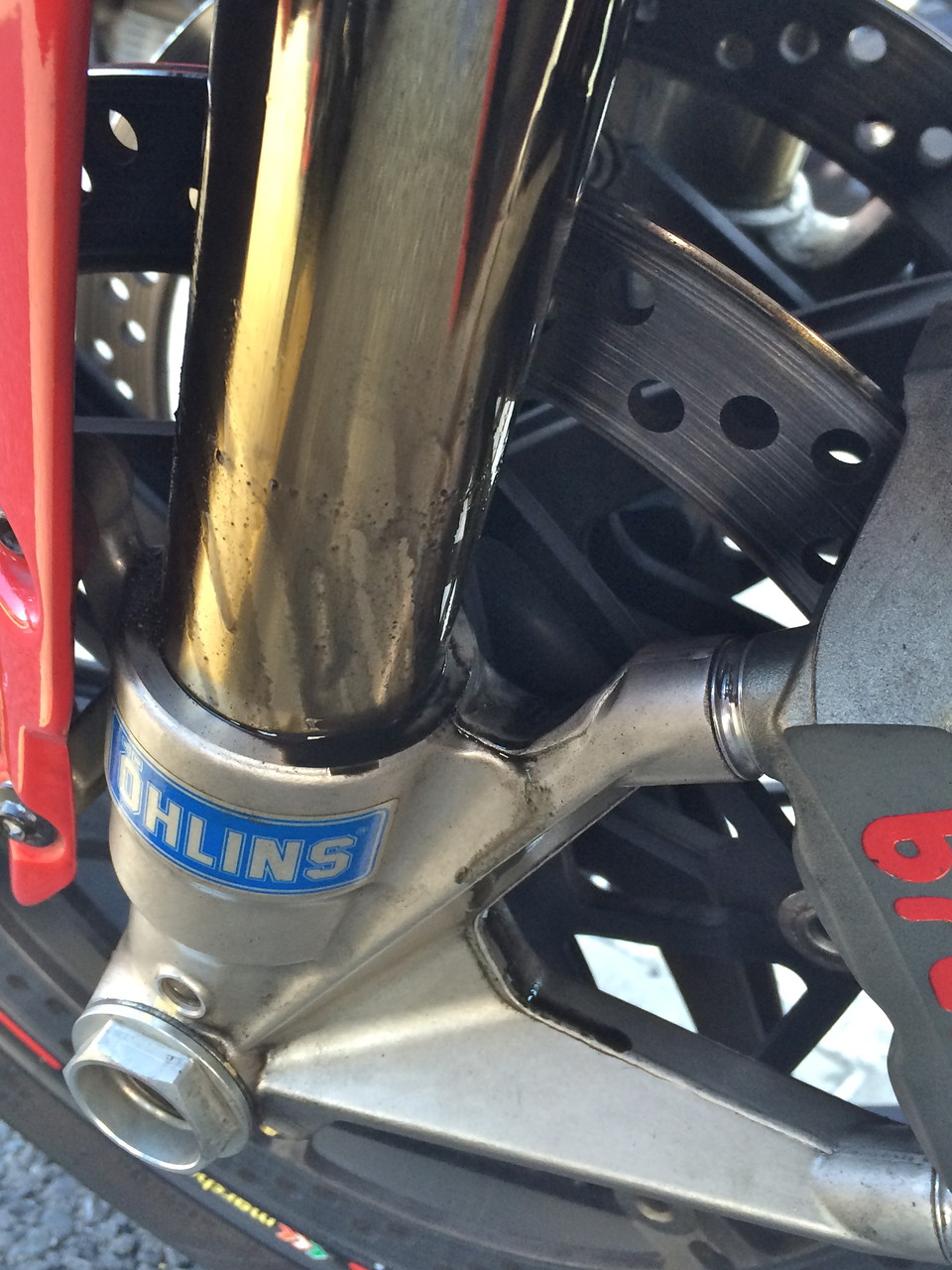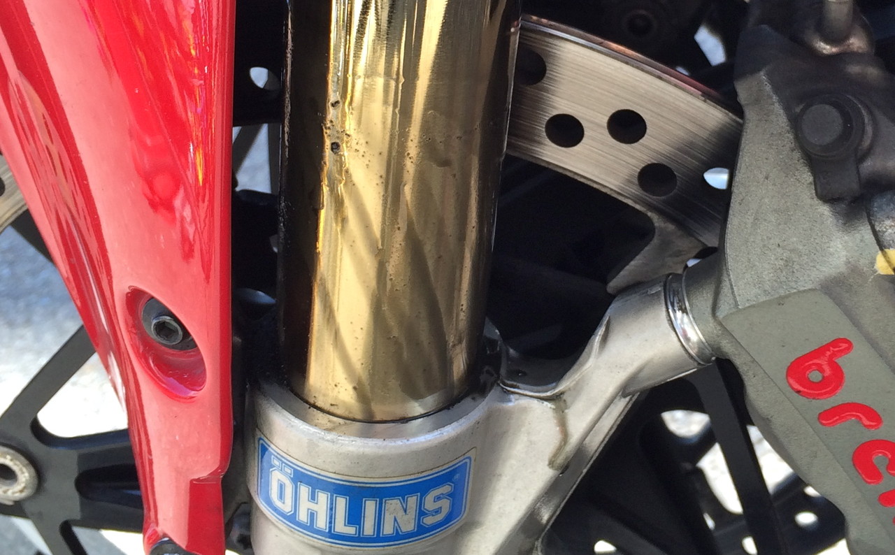 休憩中、フロントフォークのまだらな模様が目についた。