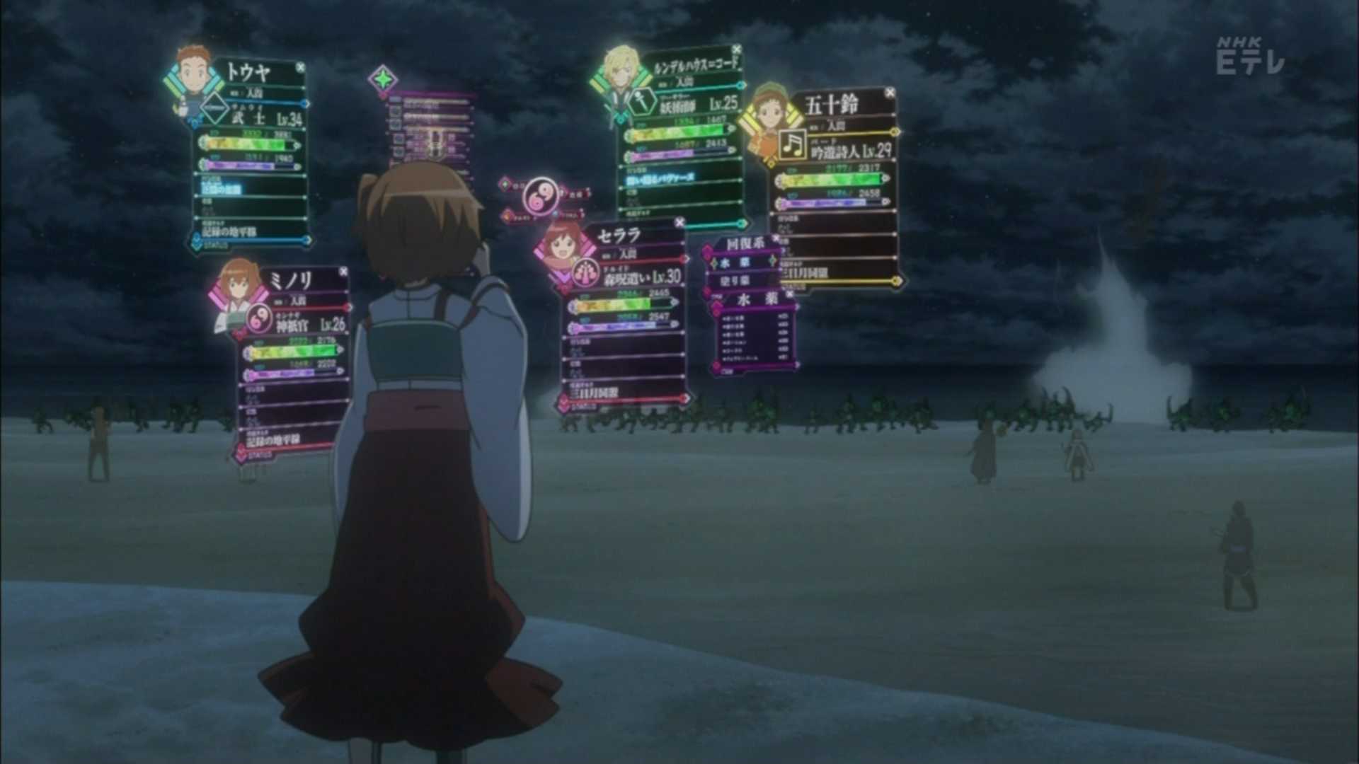 しかし直継とニャン太のLv90がどれくらい年少組と差があるのかは見えないんだな。盾役とはいえLv90がLv30の戦術能力に驚くとかMMO的にどうなの感
