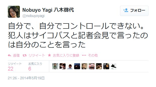 自分で、自分でコントロールできない。犯人はサイコパスと記者会見で言ったのは自分のことを言った