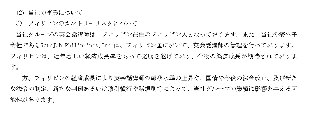※事業リスク(フィリピンのカントリーリスクについて)