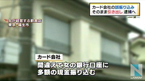 このカード会社が間違えて女の銀行口座に多額の現金を振り込みました。そして、