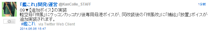 同改装後の「祥鳳改」に「補給」「放置」ボイスが追加実装されます。