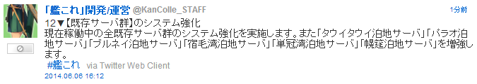 「宿毛湾泊地サーバ」「単冠湾泊地サーバ」「幌筵泊地サーバ」を増強します。