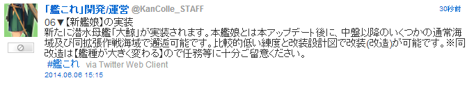 新たに潜水母艦「大鯨」が実装されます。