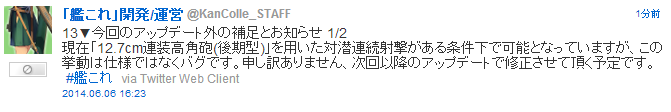 現在「12.7cm連装高角砲(後期型)」を用いた対潜連続射撃がある条件下で可能となっていますが、