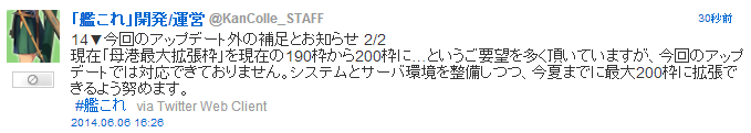 現在「母港最大拡張枠」を現在の190枠から200枠に…というご要望を多く頂いていますが、