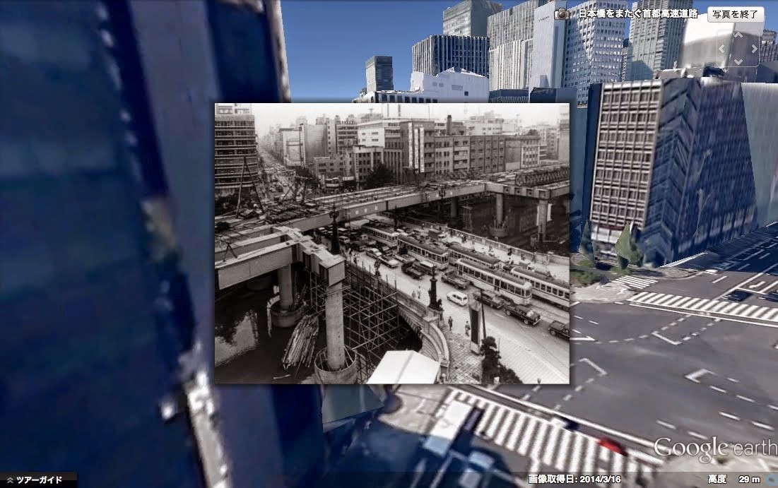 たとえばこの日本橋の上に作ってる最中の首都高の写真や