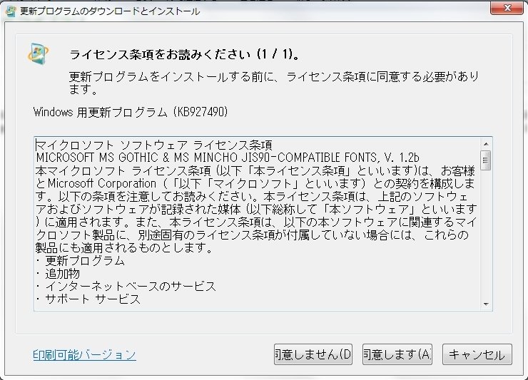 ・「プログラムの管理」からKB927490がすでに入っていたら一度削除してからやり直してみる。