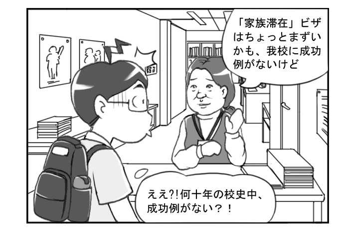 先生の話によって、専門学校の在学時間ただ二年、短いから家族ビザの申請が難しい、成功率は4年在学の大学生よりずっと低そうだ
