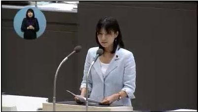 女性の妊娠・出産に関する質問が出るのが6時間34分24秒頃からです。残念ながらマイクが拾っているのは質問者の声だけなのですが、それでも議場がざわついているのは分かる。で、6時間35分14秒頃、何か言われたらしく苦笑いを浮かべて一瞬、言葉につまってしまう。おときた君のブログによると、「そんなことを言う前に、おまえが早く結婚しないのかっ!!」って野次が飛んだらしく、多分この瞬間のことなんでしょうね。ま、政治家として選挙を勝ち抜いてきたわけですから、この週末に胃痛にもだえ苦しんでた某元都知事候補者のような、そこらのひ弱な男よりも図太いはず。それでも、よほど野次の内容が酷かったんでしょうね。段々彼女の声が上擦りはじめ、質問を読み続けようと言葉を継いでいくものの、動揺した様子が画質の悪い動画でも伝わってきます。