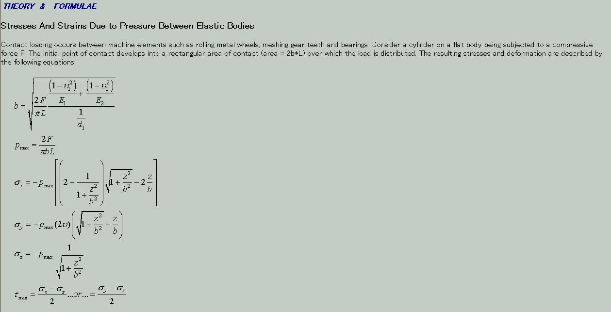 以前、ここのブログでもヘルツの関連式を紹介しましたが、当方の紹介した計算式は削除し、代わりに本計算式をここに掲載します。(以前のブログにも掲載します。)上記の計算式は楕円接触面にも対応し(円は楕円の一部と考えます。)、内側(内面接触面)にも対応しています。平面はRを∞として考えればよい。この計算式のソースとなった書物は、当方も所有しています。参考になる文献です。