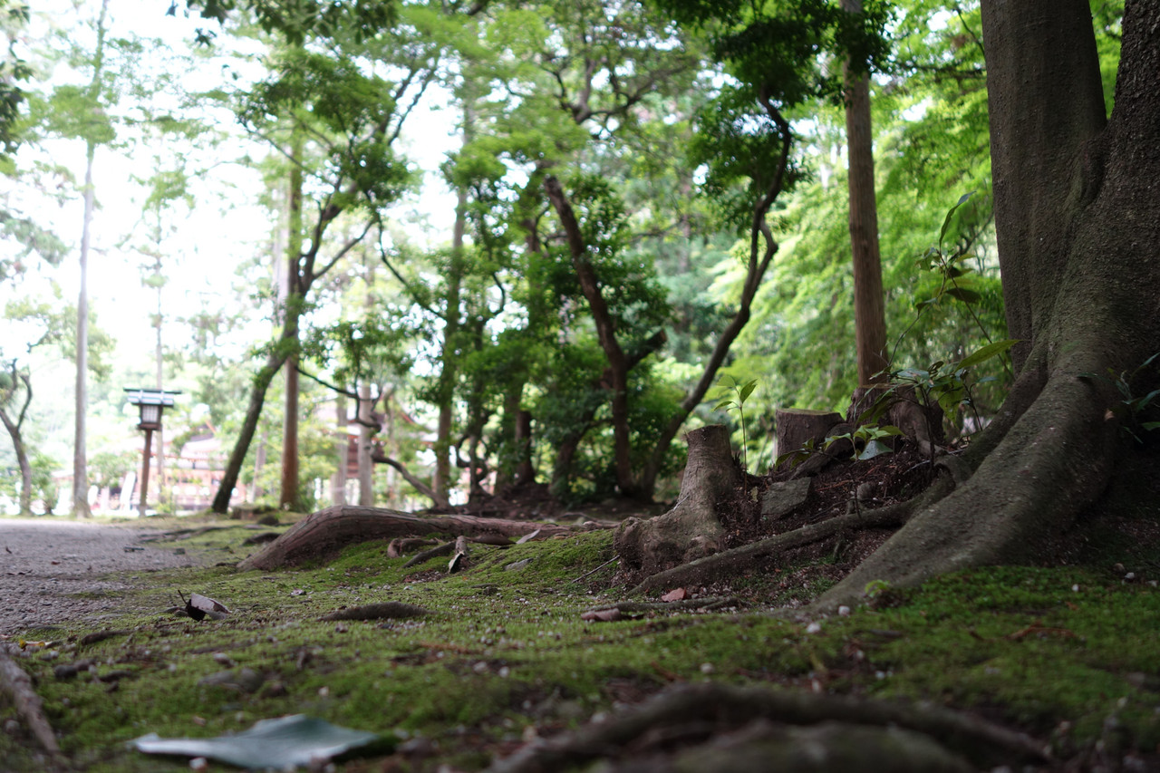 京都の神社は、森や苔が実に見事。地面スレスレから苔を撮影してみると、得も言われぬ風情がそこに。