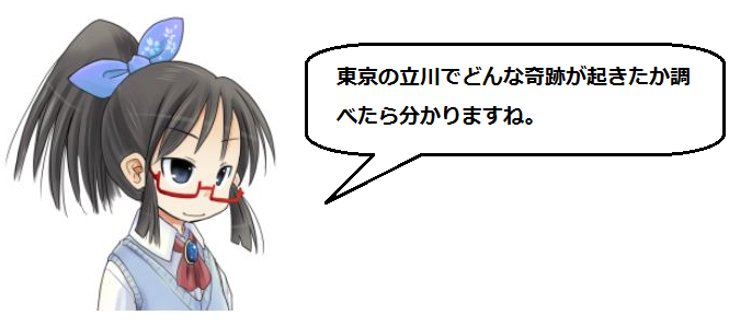 まぁ現在進行形で立川周辺で色んな奇跡起こしてるからね