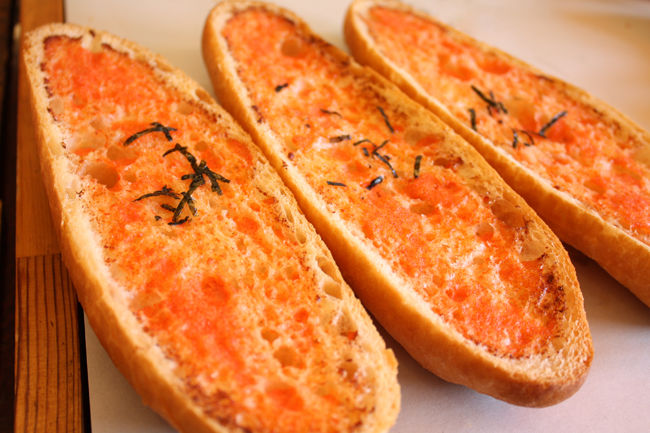 カリカリに焼いたガーリックトースト最高