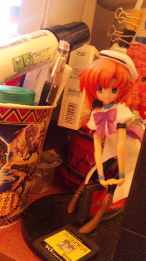 私のPCの右隣のゴミ山とひぐらしのレナ。