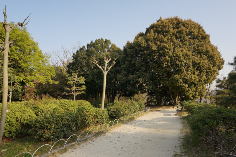 香里ケ丘中央公園の入り口。右の道を進むと香里ケ丘図書館や香里ケ丘コリオがあります。