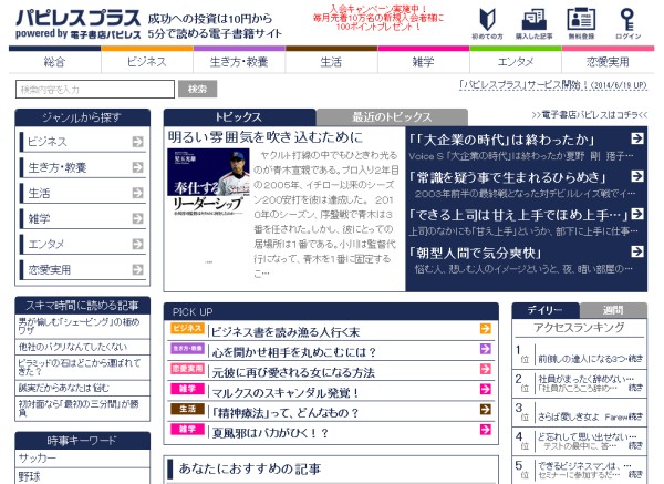 (ビジネス書などを1章10円から購入できる「パピレスプラス」)
