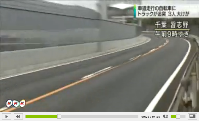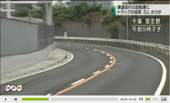 【千葉】 深夜に右側の車線を走っていた自転車2台がはねられ3人重傷 トラック運転手逮捕