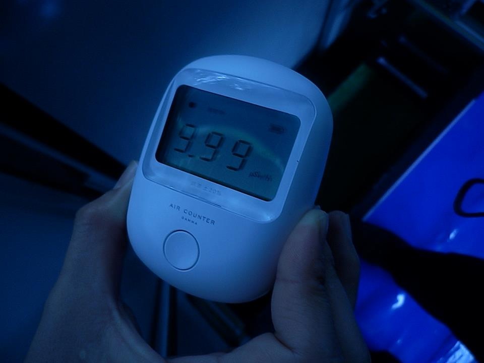 いわき駅では0.05μシーベルト程度でしたが、バスが福島第一原発に近づくにつれて如実に数値が上昇していき、ホットスポットになっている交差点では、バス車内にも関わらず9.9μSVまで数値が上がりカウンターストップ…。