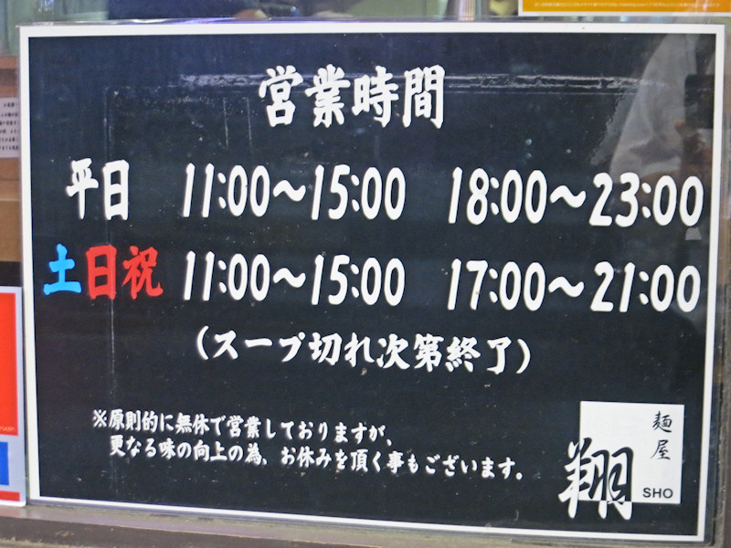 麺屋翔@西新宿七丁目(ホームページ)、好きで好きで応援しているラーメン屋、と公言しているくせに、数ヶ月ぶりの訪問。