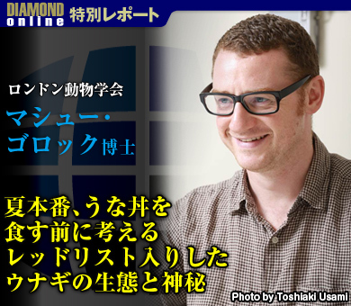 土用の丑の日だった昨日、読者のみなさんは例年同様にウナギを召し上がっただろうか。近年は中国産などの台頭によって価格が下がり、盛夏のみならず、1年中ウナギを安価で食べられるようになった。しかし、一方で乱獲や海洋環境の変化などによって、ウナギの数は激減。今年6月には、とうとう国際自然保護連合(IUCN)がニホンウナギをレッドリスト(絶滅危惧種)に指定したとのニュースも記憶に新しい。IUCNのウナギ専門家で、ロンドン動物学会のマシュー・ゴロック博士に、レッドリスト入りをわれわれ日本人がどう考えればいいのか、話を伺った。(聞き手/ダイヤモンド・オンライン編集部 津本朋子)