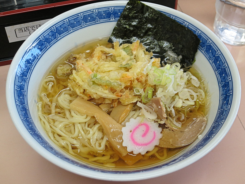 程なくして冷しラーメン490円、かき揚げ100円、おお、久し振りの天中華(あっ、昨日、仙台で食べたばかり)。
