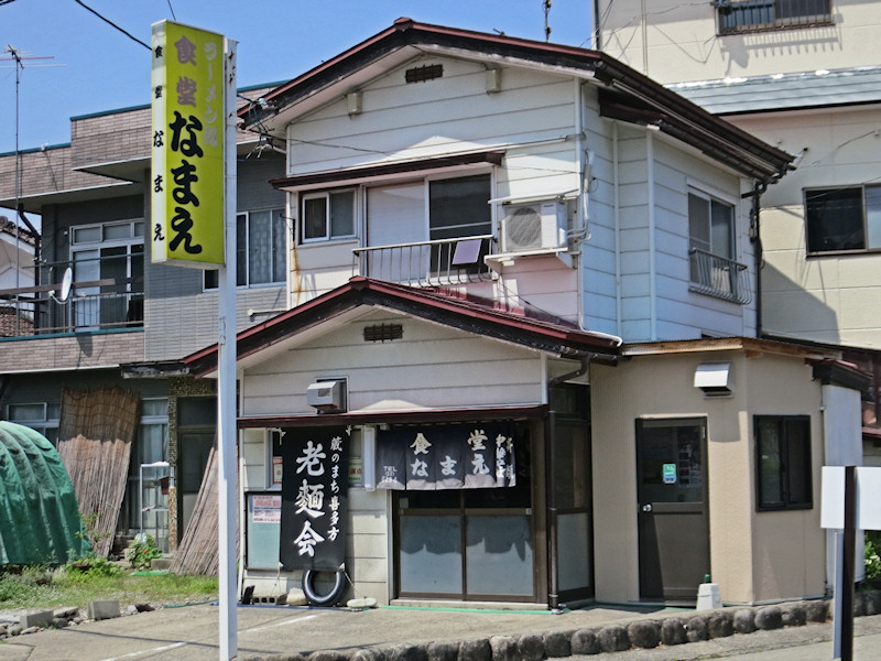 一般的には「○○食堂」という屋号ですが、たまに「食堂○○」というのもあって、推測ですが、ここ喜多方には「生江食堂」があるので、こちらは「食堂なまえ」にしたのかな。