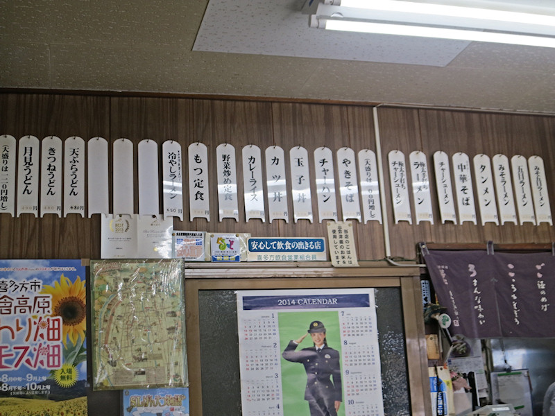 メニューは喜多方ラーメンから始まって、チャーシューメン、みそラーメンと続き、山ちゃんラーメン、担々麺のラインナップ。