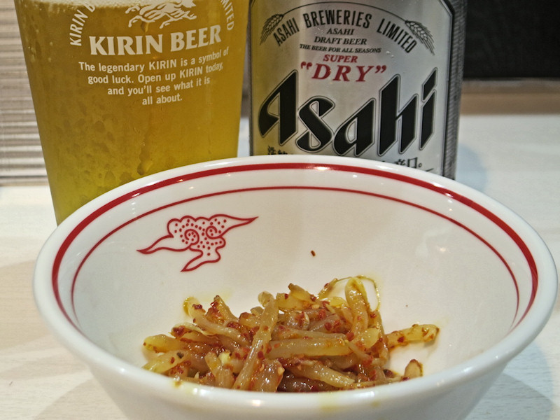 付き出しをつまみながらビールを美味しく頂きながらラーメンの出来上がりを待ちます。