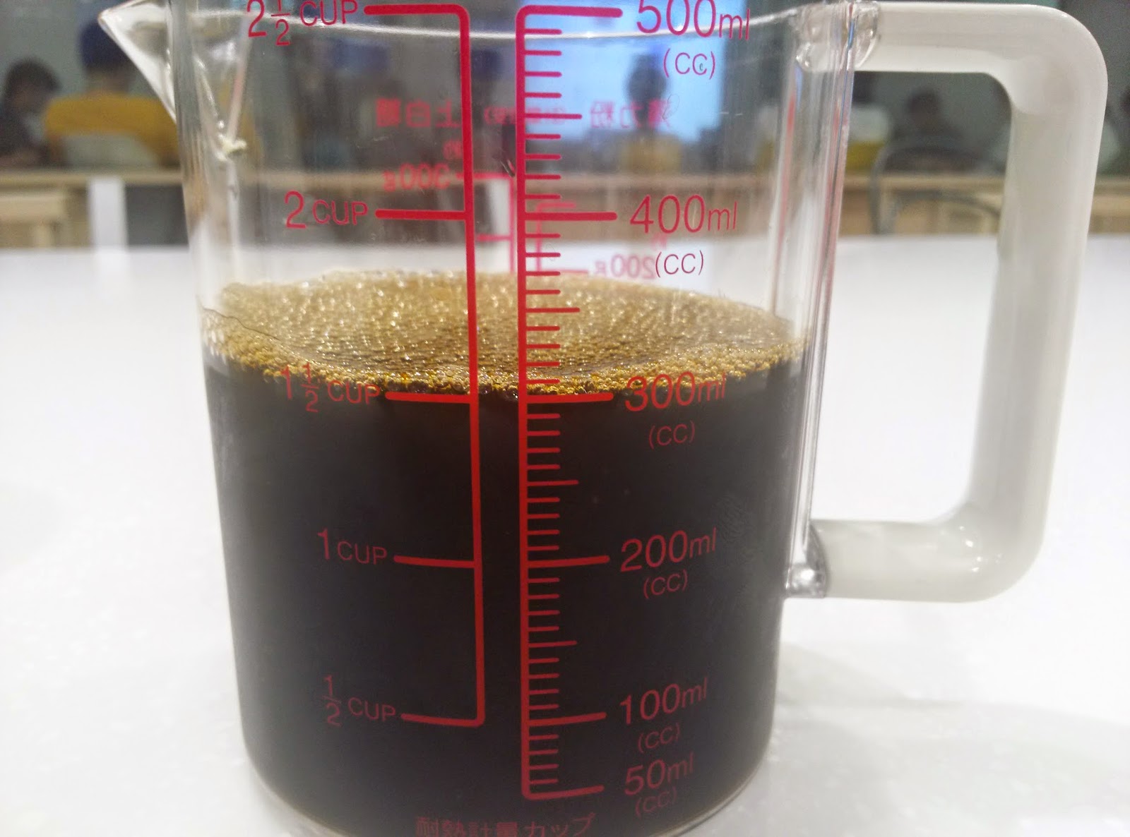 …というわけで実測結果を挙げていきます。なおセブンカフェはみなさまご存じのとおり「熱いコーヒーを抽出して氷入りのカップに入れ、冷やして飲む」ものですので、投入してから数分経って完全にコーヒーが冷えた頃合いを見て、かつ、放置しすぎない(=氷が溶けすぎて嵩が増えない)よう注意して測定しました。