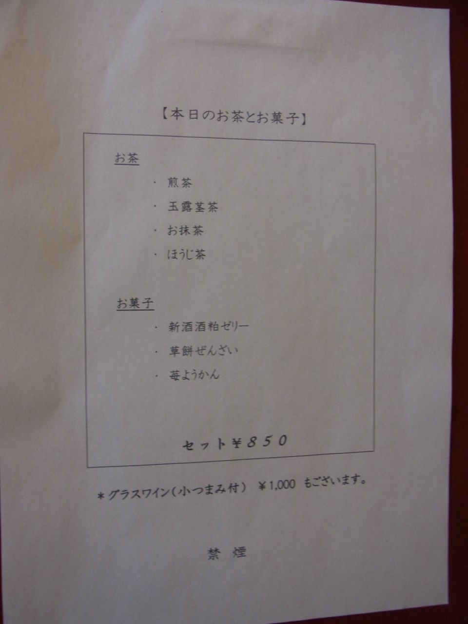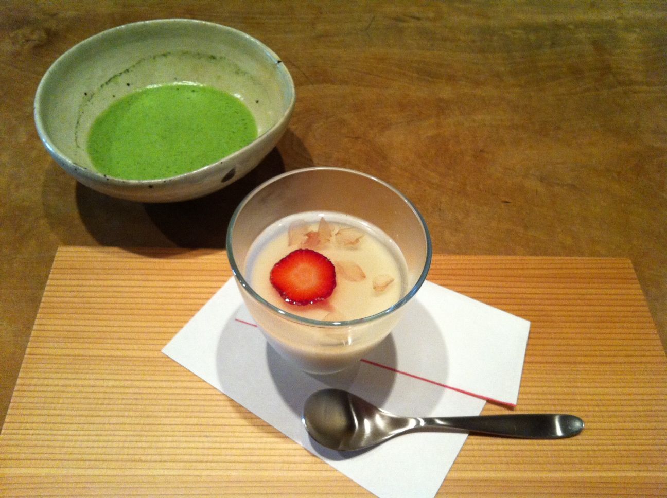 下戸でも大丈夫と言われた「新酒酒粕ゼリー」にしてみました。お茶は大好物のお抹茶で。