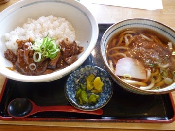 名古屋きしめんセット(息子)、どてめし定食(私)、カレーきしめん(ワイフ) を食す。