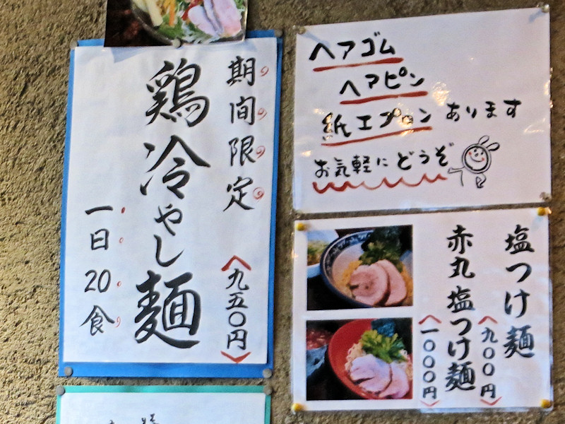 書かれていた屋号を消したままのような軒先、店先にメニューが置かれていて、さっと見て食べるラーメンを決めました。