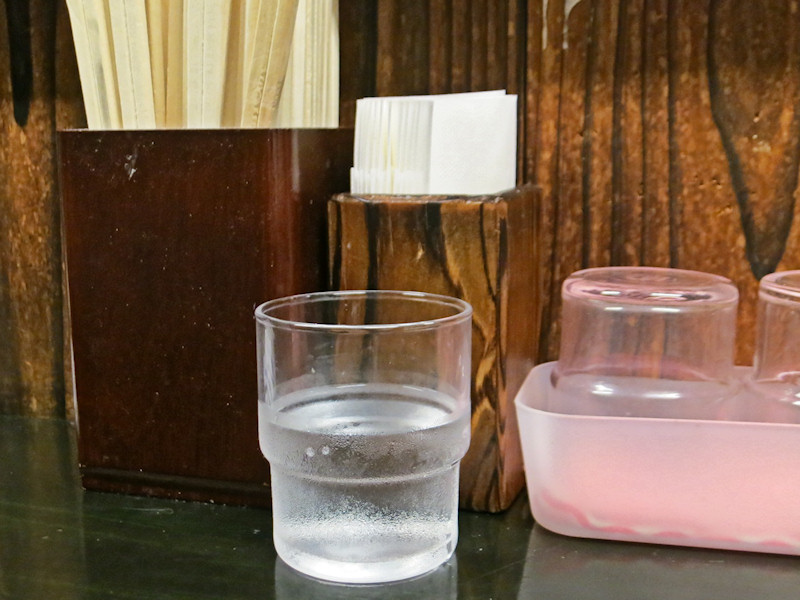 夏季限定メニューは売り切れたとのことで、つけ麺をお願いし、お冷やを飲みながらラーメンの出来上がりを待ちます。