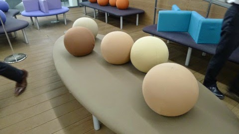 床の丸いのから,空調の空気が出ている.