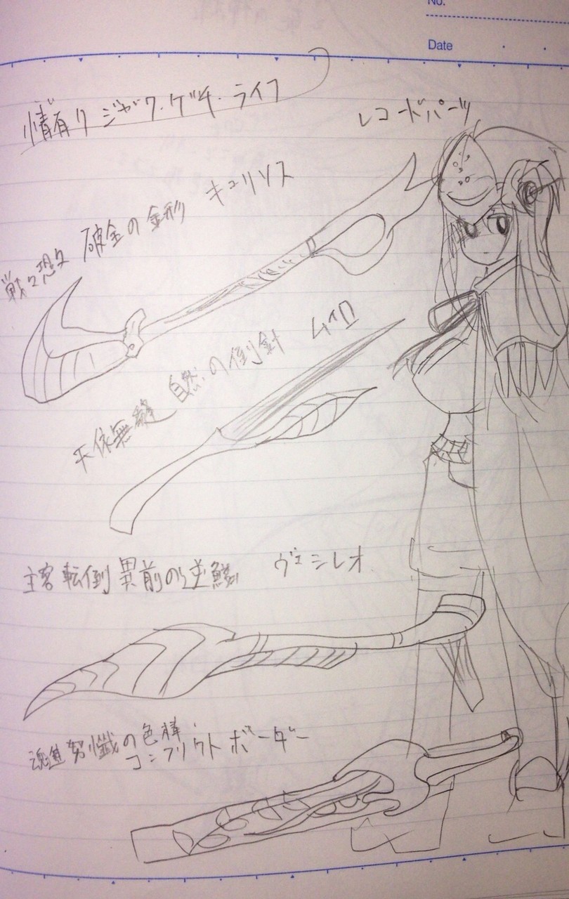 もう捨てちゃったけど俺はオリジナルのモンハンの武器描いてた気がする