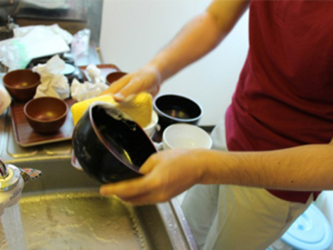 社員がまともに働かないので、社長の吉田自らが皿洗いをしている